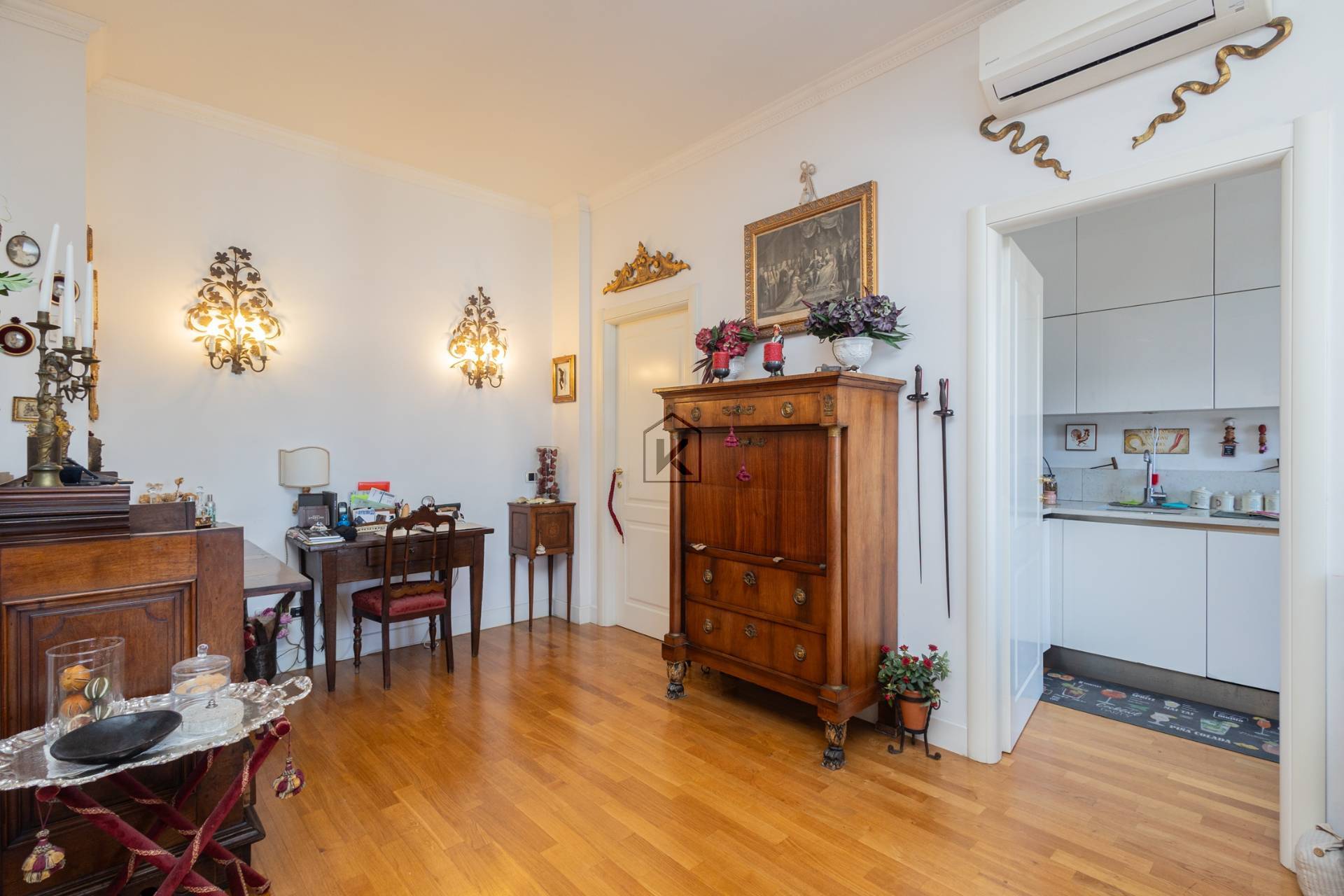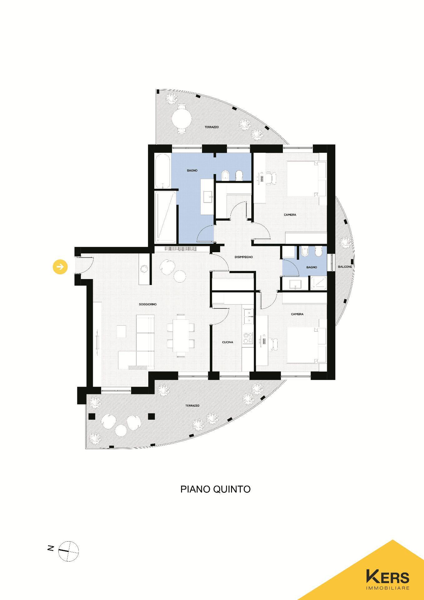 ARGONNE/CORSICA: VENDESI LUMINOSO 5 LOCALI PIANO ALTO DUE TERRAZZI OTTIMO STATO BOX INCLUSO. Nella servitissima Via Cardinale Giuseppe Mezzofanti, in contesto di recente costruzione, Kers Immobiliare propone in vendita splendido 5 locali piano alto due terrazzi box incluso. Attualmente l’appartamento è composto da: ingresso su soggiorno doppio con accesso al terrazzo loggiato, cucina con accesso al terrazzo loggiato, due comodi disimpegni con ripostiglio, due ampie camere da letto, bagno finestrato con balcone, cabina armadio, una terza camera con accesso al secondo terrazzo loggiato, attualmente adibita a sala da bagno (la terza camera e il secondo bagno come in origine sono facilmente ripristinabili); al piano -2 completano la proprietà una cantina di ca. 3 mq ed un box di ca. 17 mq (profondità 5.50 m, larghezza 2.95 m) con ingresso automatizzato sia per il cancello esterno che per la porta basculante di accesso; la cantina ed il box sono favorevolmente ad un piano intermedio (cantine e box del condominio raggiungono il piano -3) con assenza di tubature condominiali invasive e sono raggiungibili direttamente con i due ascensori presenti nel condominio. Porta blindata, videocitofono, aria condizionata, serramenti in legno con doppi vetri, allarme perimetrale e volumetrico, pavimenti in parquet tradizionale rovere in tutta la casa e gres porcellanato per i bagni, riscaldamento centralizzato con termosifoni dotati di termostato ambiente, produzione acqua calda centralizzata, tapparelle blindate elettriche, due terrazzi loggiati ed un balcone, tripla esposizione (est/sud/ovest). Bel palazzo moderno signorile del 2007, dotato di due ascensori che permettono di arrivare direttamente dal piano box all’appartamento, giardino condominiale con irrigazione automatica, sala riunioni con bagno a disposizione dei condomini, locale biciclette, ingresso carrabile con cancello automatizzato. Zona servita da ogni tipo di attività commerciale e numerosi mezzi di trasporto di superficie, a pochi metri dalla nuova linea metropolitana M4 (fermata Forlanini) e dalla stazione Forlanini FS. L’immobile presenta numerosi vantaggi: il piano alto luminoso, l’ottima planimetria, la moderna costruzione recente con totale assenza di barriere architettoniche, balcone e terrazzi di ca. 35 mq., box automatizzato con doppi ascensori che permettono di raggiungere direttamente l’appartamento, zona molto ben servita, la metropolitana e la stazione FS.